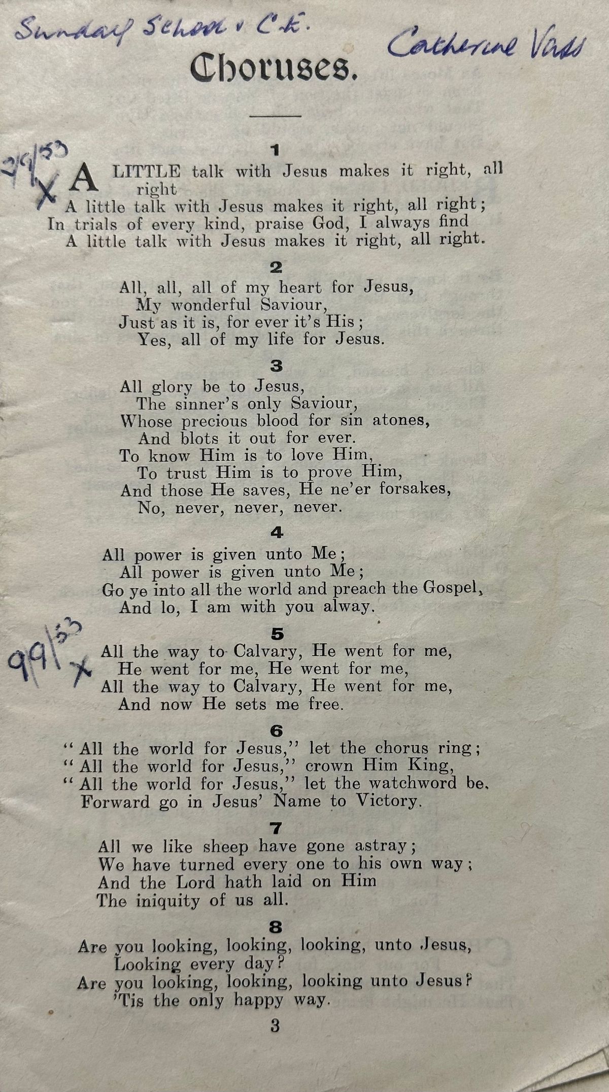 Jenny Vass, Helen, Grace, Anne MacKintosh, Eleanor, Catherine Vass visiting Northfield Women's Presbyterial.