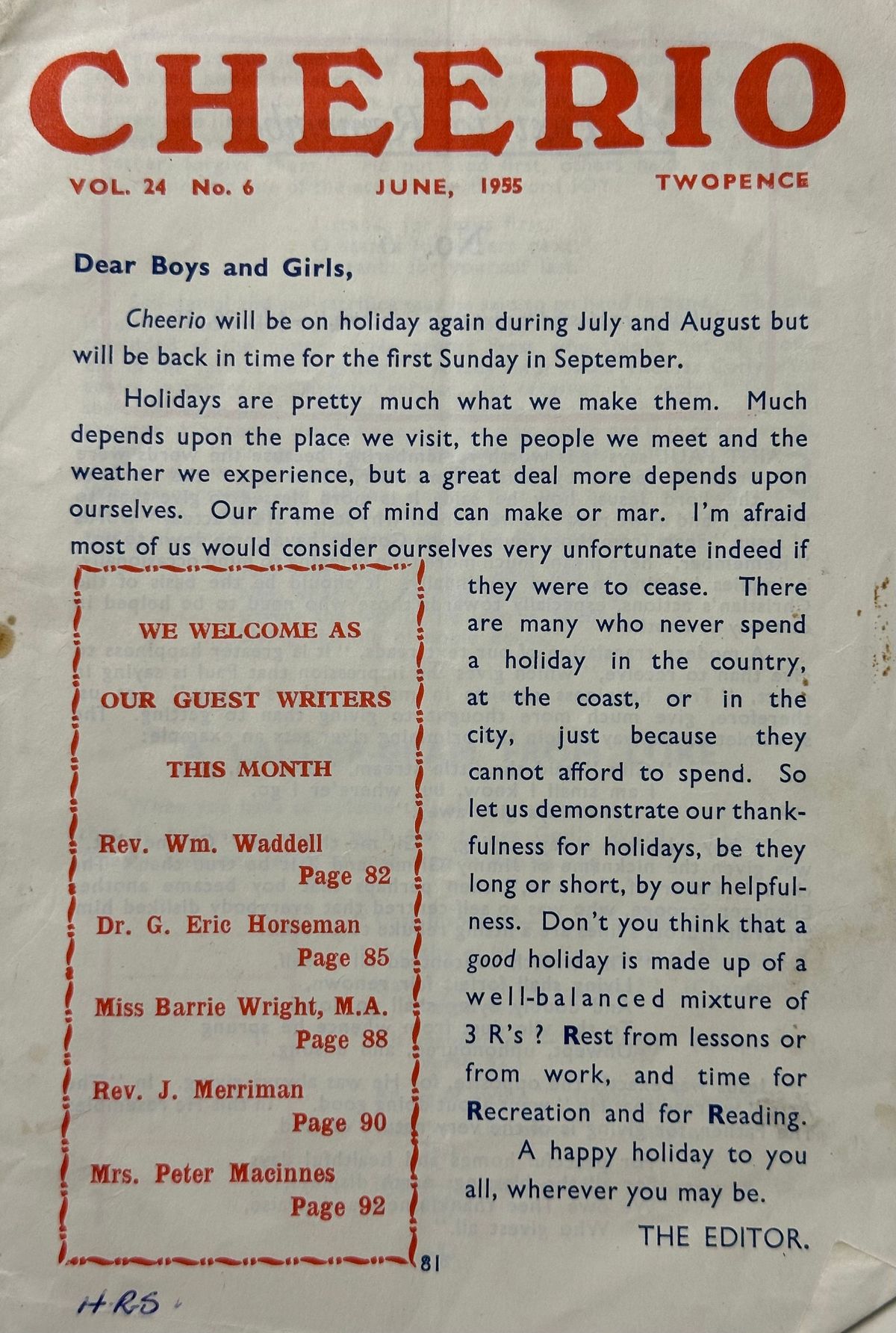 Mrs Campbell, Rev Austin Stirling, Jessie King, Rev Duncan Campbell, Bertha Begg, Brian, Katy Vass.
