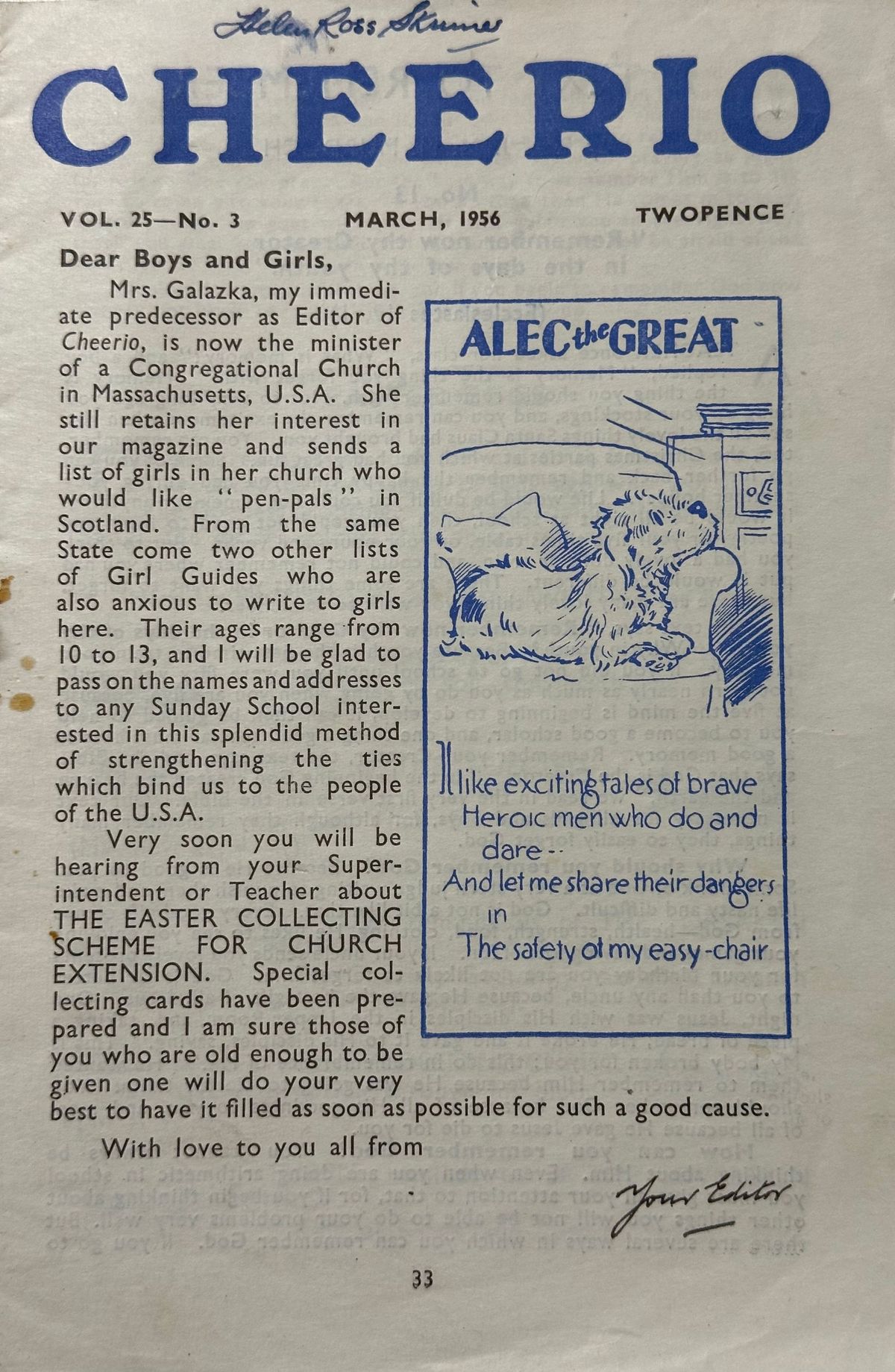 Rev Eakins, Maggie Ross, Helen Skinner, Alex George Vass, Nancy Fraser, Christan Skinner.
